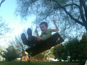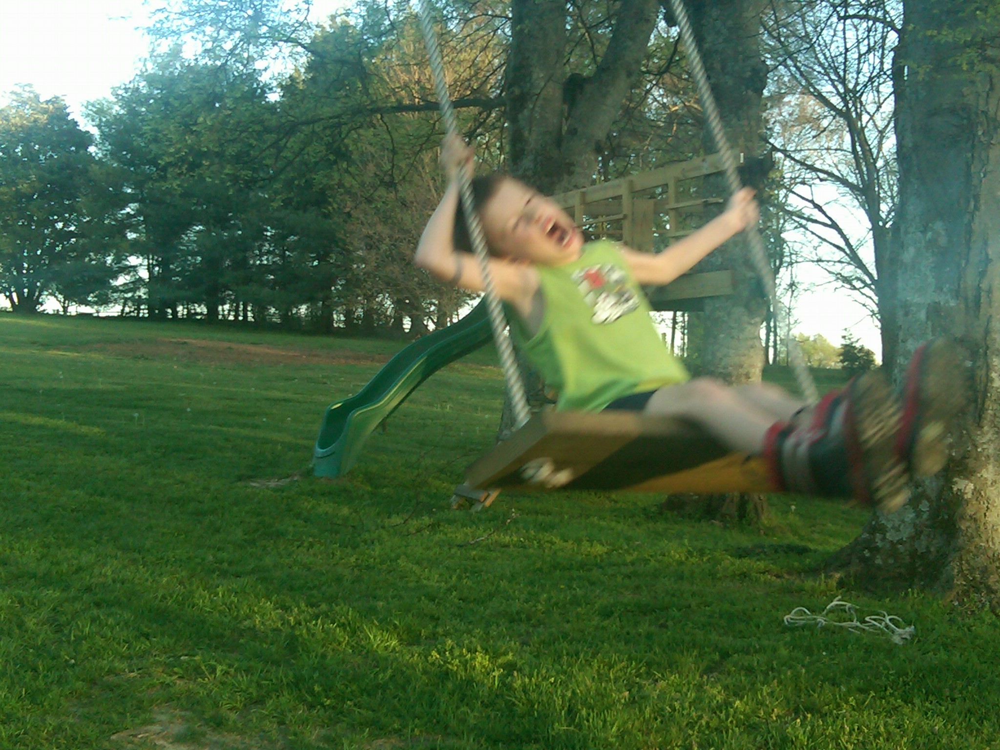 A quick phone cam shot of Hubbard soaring after I gave him what we call an “underdog”. That’s where you push a person on the swing over your head and run under them, pushing them way high in the air!