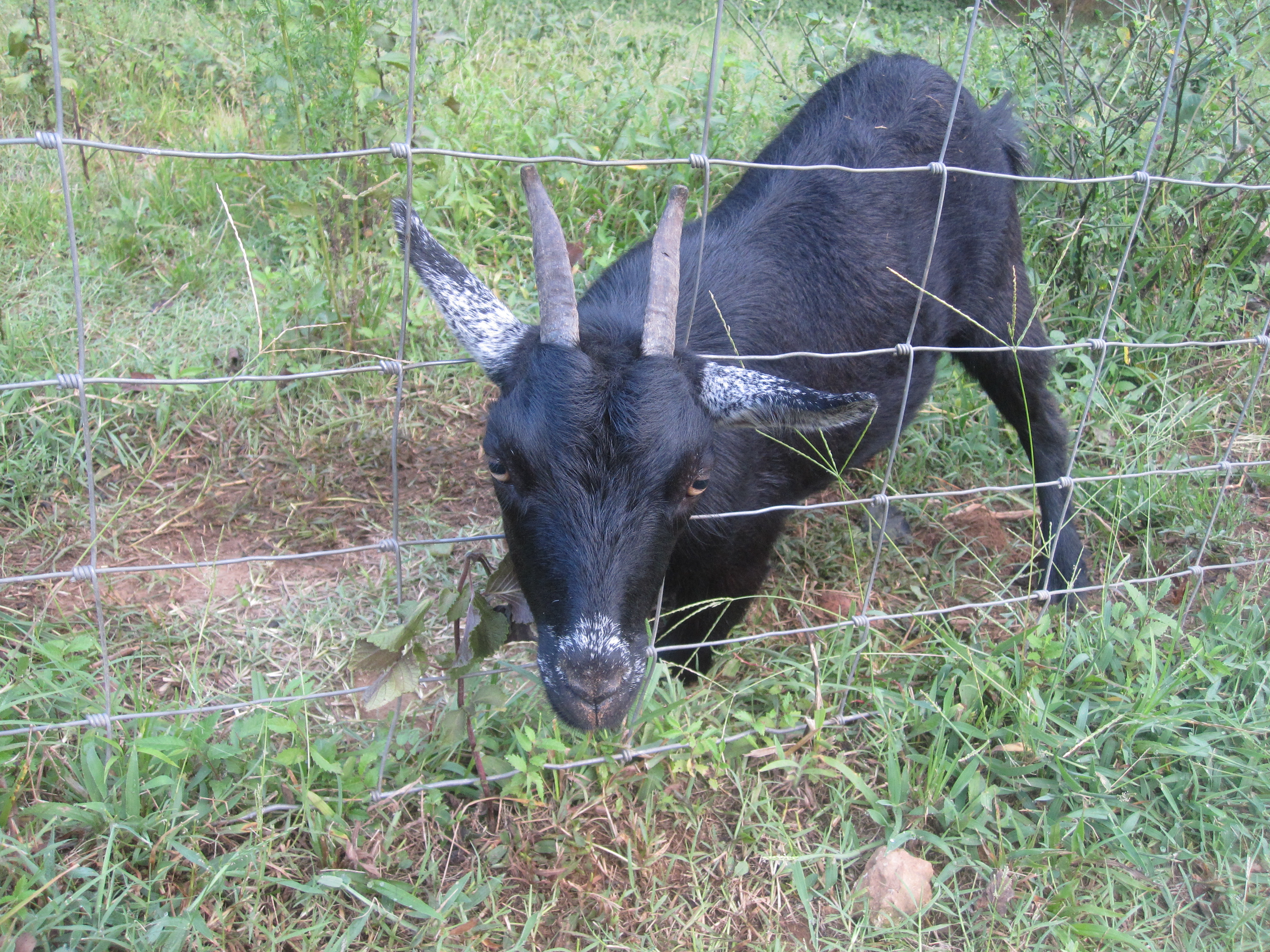 Here’s “Sister”, stuck again. No matter how many times goats get stuck in the fence for hours at a time, they just can’t resist grass on the other side.