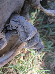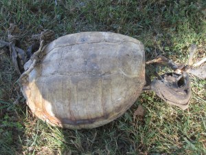 The kids pulled this recently deceased snapping turtle out of our pond. His shell is approx 15″ across. The turtle would’ve packed quite a ‘snap’ in his day.