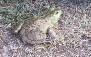 We found this enormous bullfrog hiding under our corn toss game at a party. You should hear these guys sing at night.