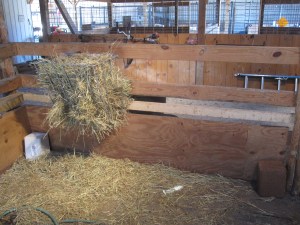 I let the animals come into a barn stall through a special door in the cold months. I spent the weekend getting it ready for them with fresh hay, protein and salt blocks, etc.