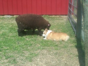 I never thought I’d see the day that “Persimmon”, my Pembroke Welsh Corgi, and my sheep “Puff” would relax and hang out together. They’ve got a long history of Persimmon chasing and herding the animals and the animals looking for the right opportunity to head butt Persimmon into next week. But on this rare occasion, they seemed to call a time out and just enjoy a few moments of relaxation.