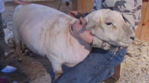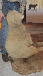 Each spring we shear the sheep of their thick wool for the warmer weather ahead. Notice how still “Pearl” is here. When you put a sheep in this position, they freeze. This allows you to shear them safely.