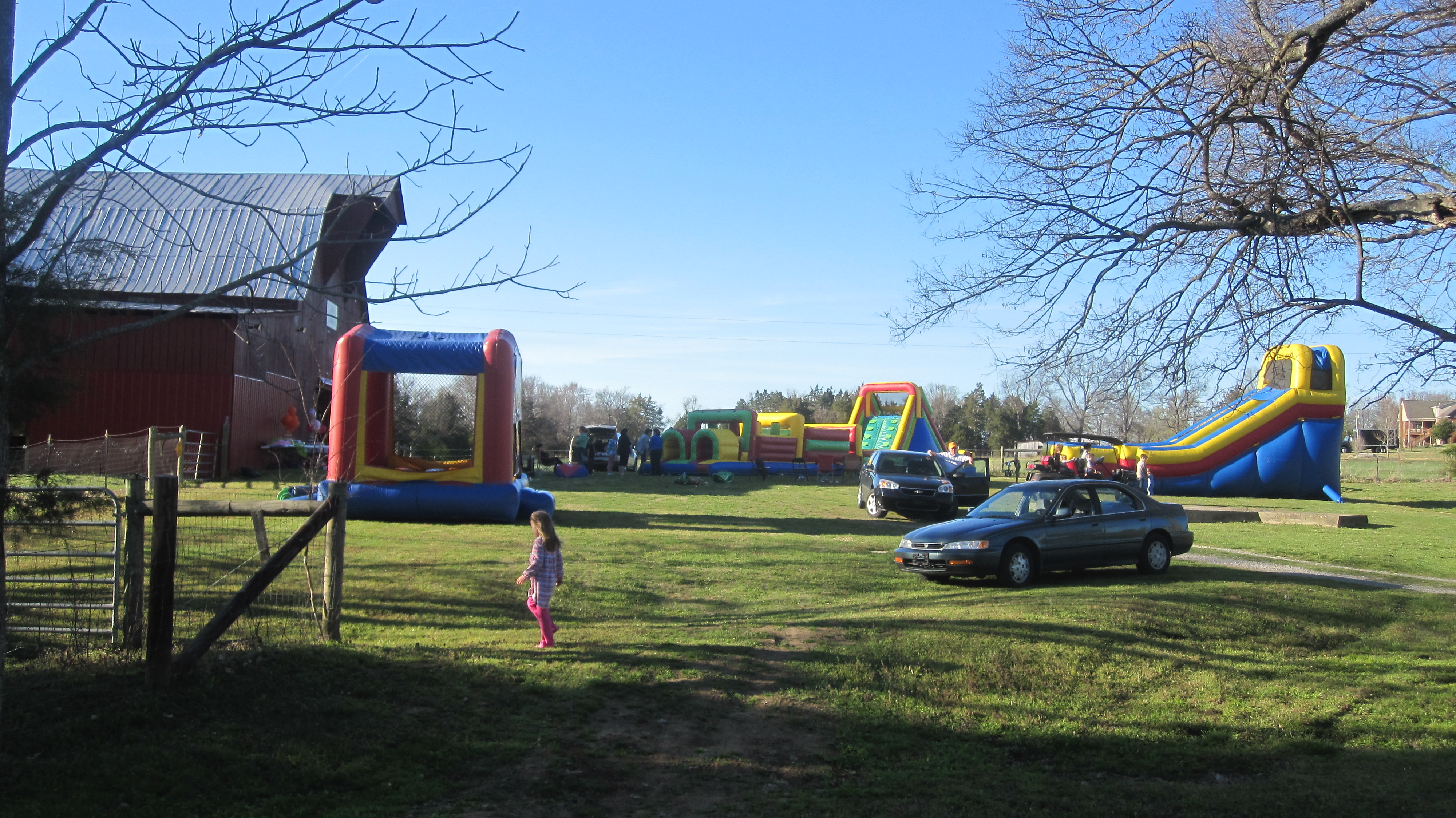 What a great spring day for a triple birthday party on the farm. Charles turned 5, cousin Violet turned 4, and cousin Leyna turned 14. We went all out with huge inflatable slides, bounce house, and obstacle course. Everyone enjoyed being outside and celebrating together.