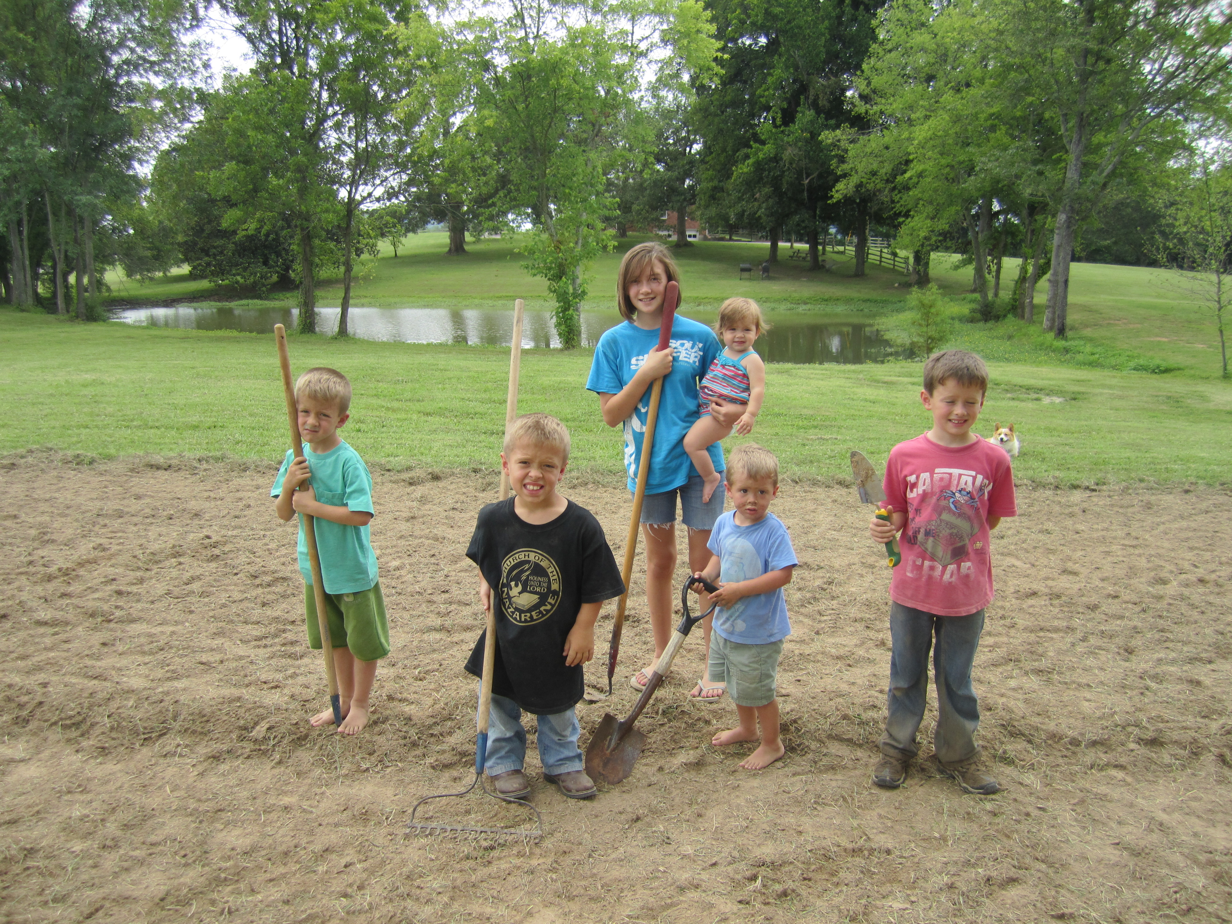 We got outside bright and early Saturday to beat the heat and plant our first pumpkin patch. This fun project isn’t just for fun though. We’re going to run it like a small 90 day business for the kids, keeping up with expenses and selling the pumpkins just in time for Halloween. You can follow it at http://galloway6.com/ .