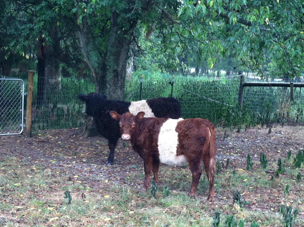 Nope, you’re not seeing things…our new cows do look like Oreos. One is black/white and her sister is red/white. They’re called Belted Galloways, or Belties for short. How could we pass up on a breed called Galloway? We just got them a few days ago and we’re glad to have them as part of the Galloway farm animal family!