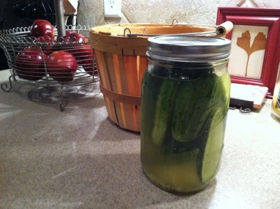 We picked some small cucumbers from our garden to make into homemade pickles. We boiled the potent smelling pickling concoction, then put it all in a jar. And in just 3 short weeks, we’ll enjoy our very first batch of Galloway pickles!