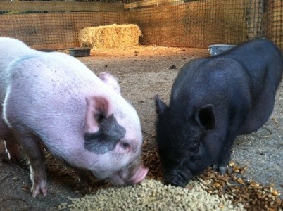 Piggy (pink) and Baby are still doing great and are best friends. I’ve never seen anything grow quite so fast. One of my most favorite things about mini piglets is the way they smack their food.