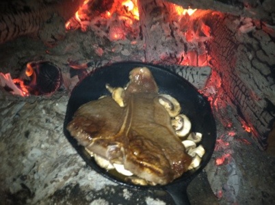 Rhonda & our (six) children went to visit family in KY. That leaves me a night by myself and there are few things that re-charge my batteries more than hours beside a fire. A t-bone steak with some mushrooms and a fire roasted potato are tough to beat. In fact, Persimmon (our Corgi) and I just decided to sleep outside and make it an all nighter beneath the stars.