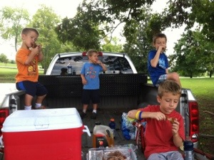 A long Saturday on the farm with the family. Lunchtime was leftover fried, cooked by my 91 year old grandmother, in the back of the truck.