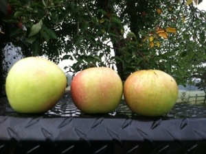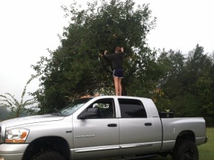 One of my favorite things about the farm is growing fun things to eat. For some reason the squirrels spared our apple tree this year (very unusual) and we’ve waited patiently for them to start turning red. Faith made good use of the truck to reach some tasty apples high up in the tree.