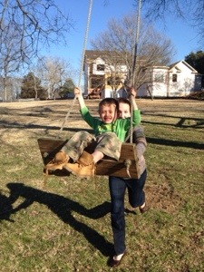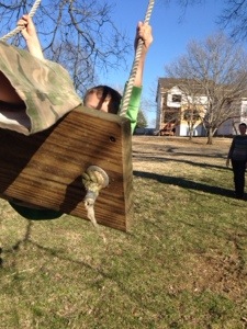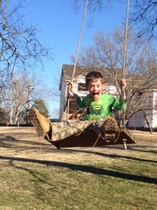 Here’s a few fun shots of Claude enjoying an “underdog”, which is where a person pushes you so high on the tree swing that they run under you as they give you one last giant push that sends you soaring toward the sky.