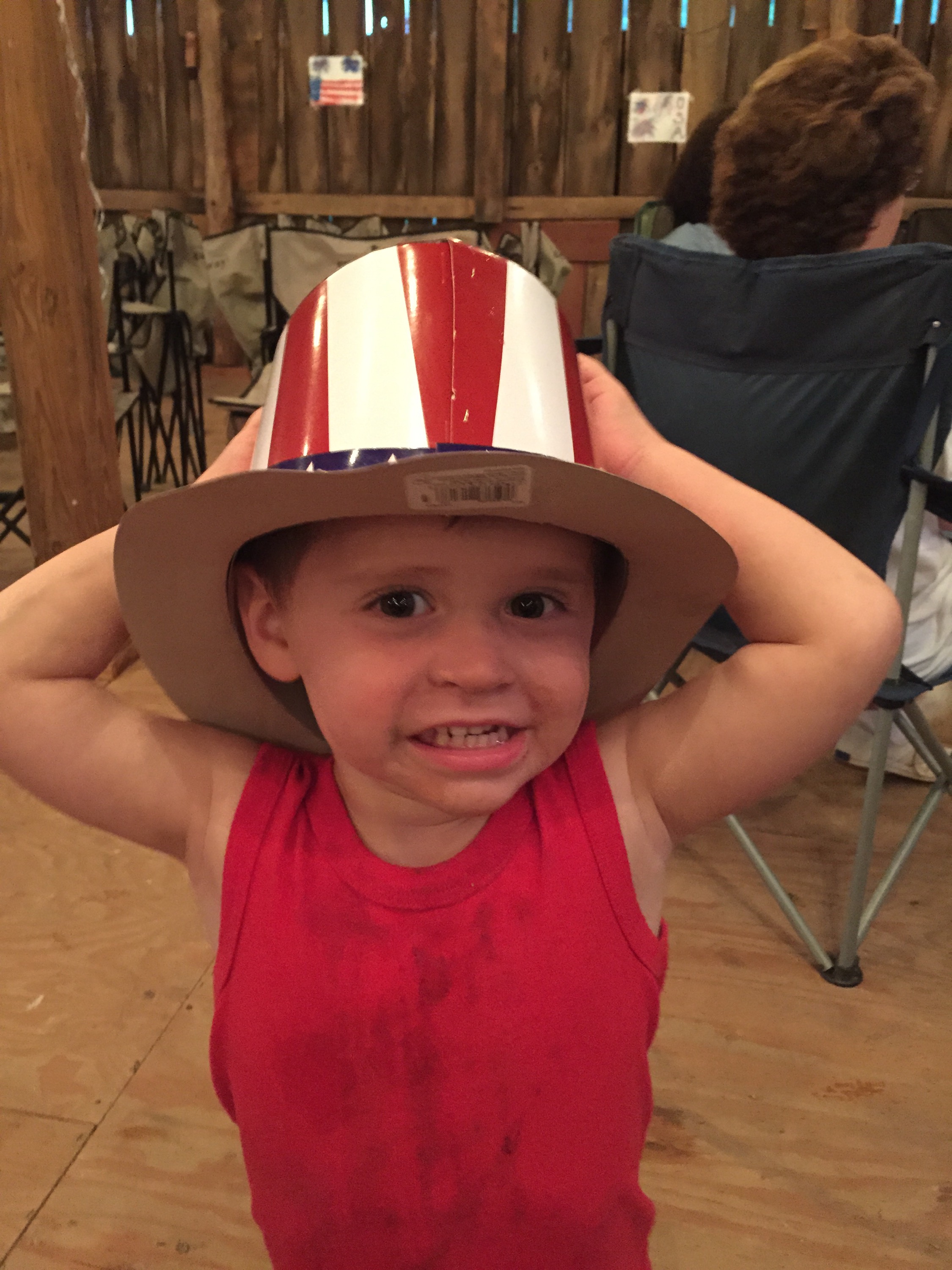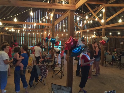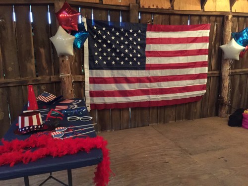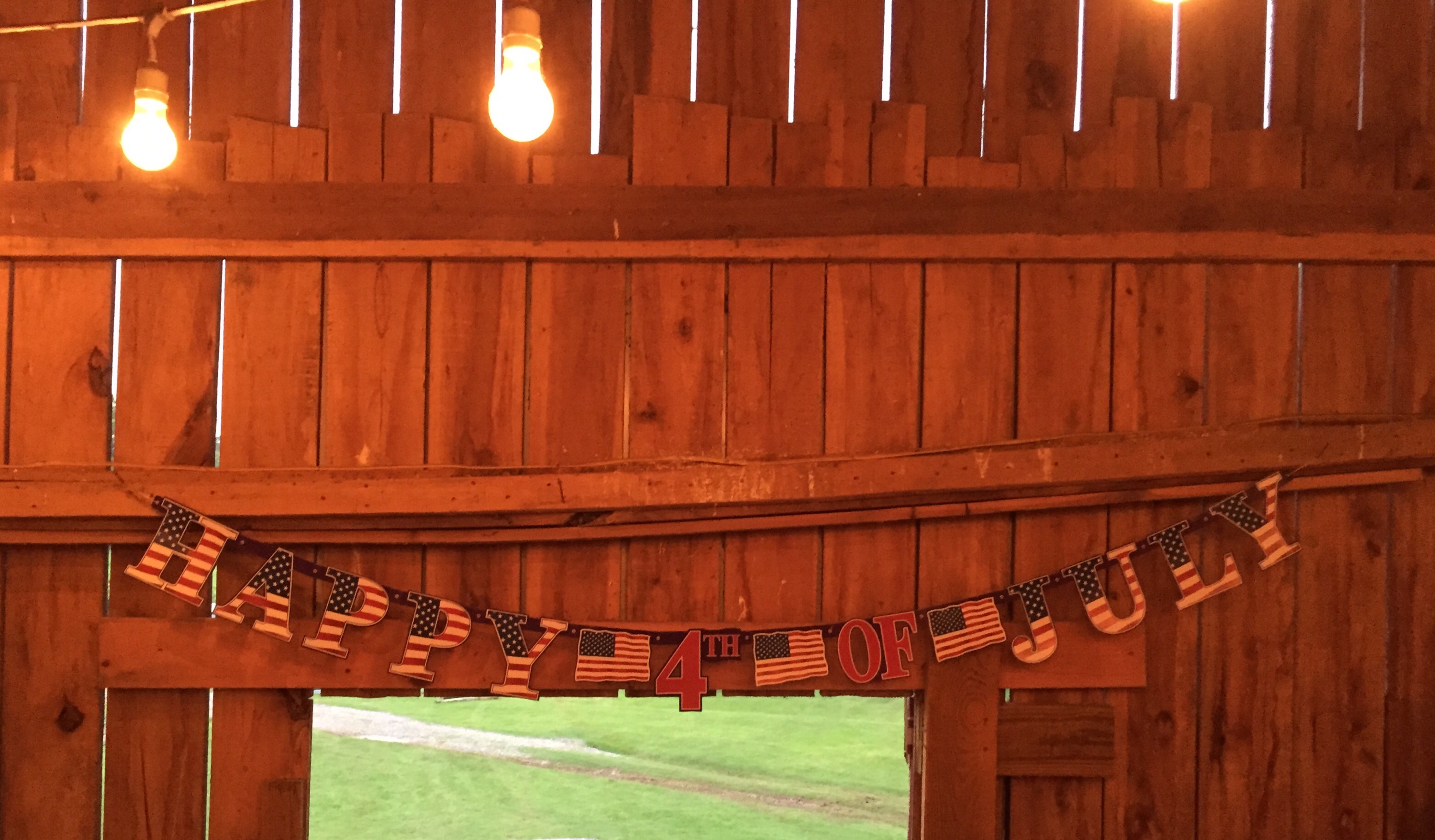 Monsoon-like rain moved our party into the barn loft, but it didn’t dampen our spirits! We had a great time with family and friends celebrating the greatest country in the world.