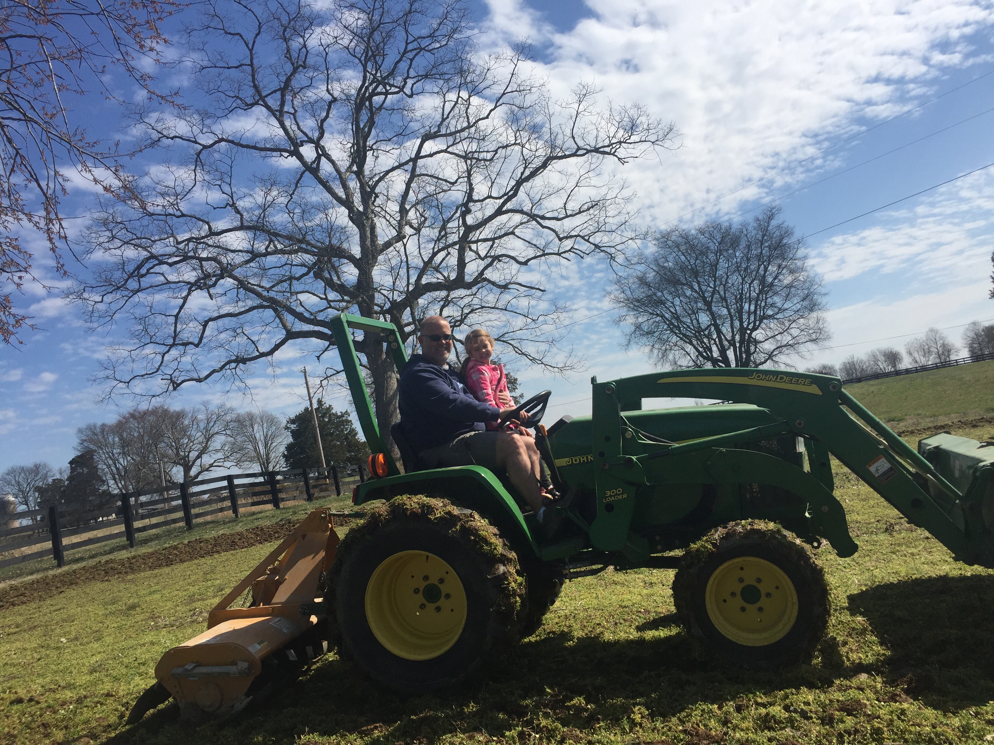 Eager for spring gardening, we broke the ground up to start getting ready for planting time a few weeks away. Tractor rides are always a big treat for the kids.
