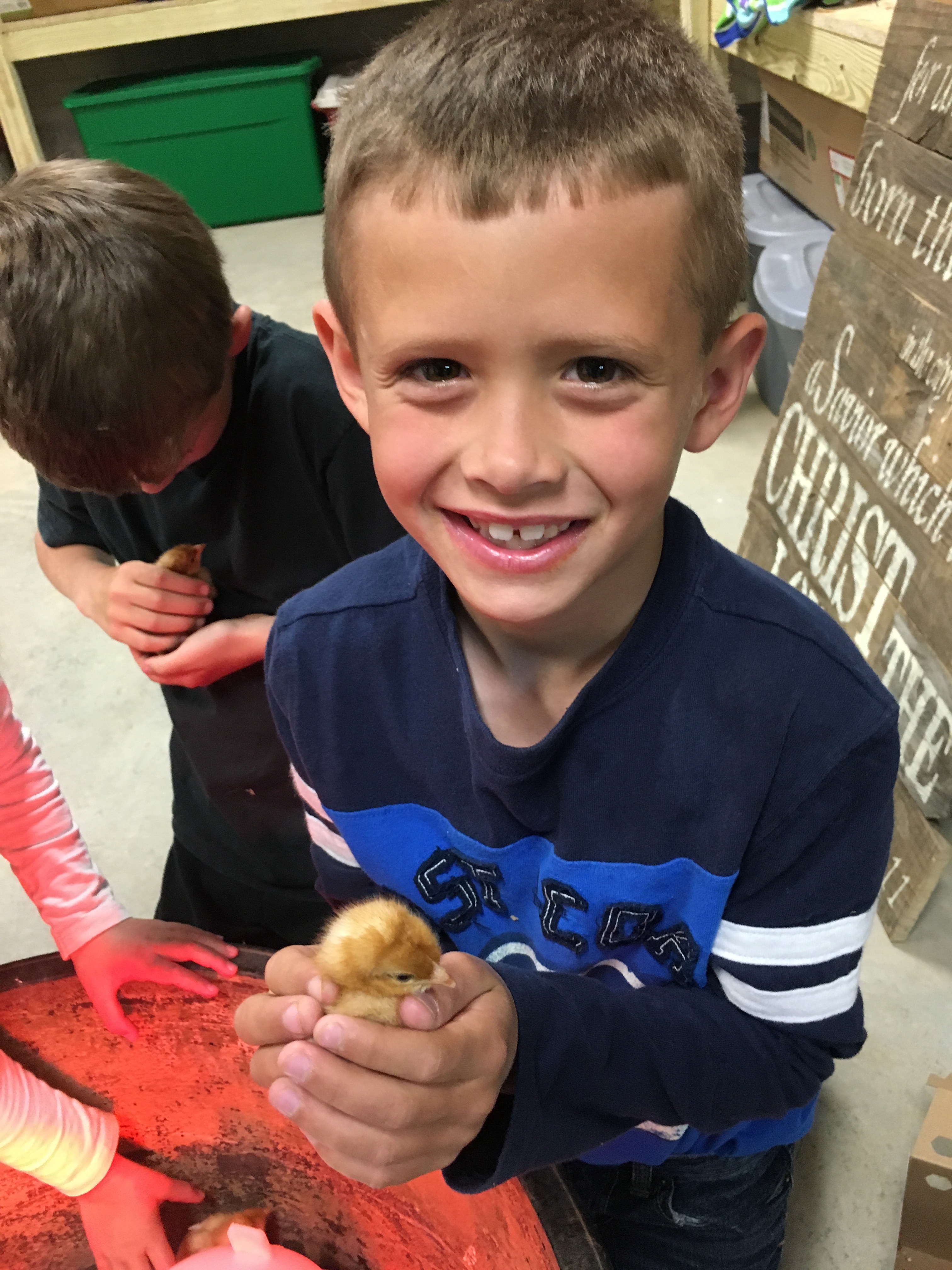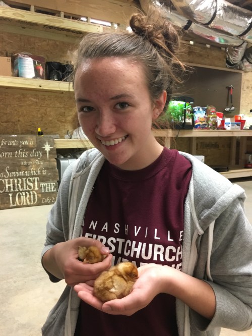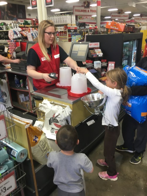 We made a trip to Tractor Supply Co and we came home with six red sexed link chicks. The kids love them and chicks are getting tons of love and attention. : )
