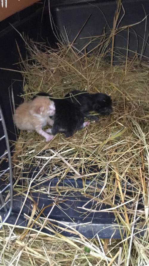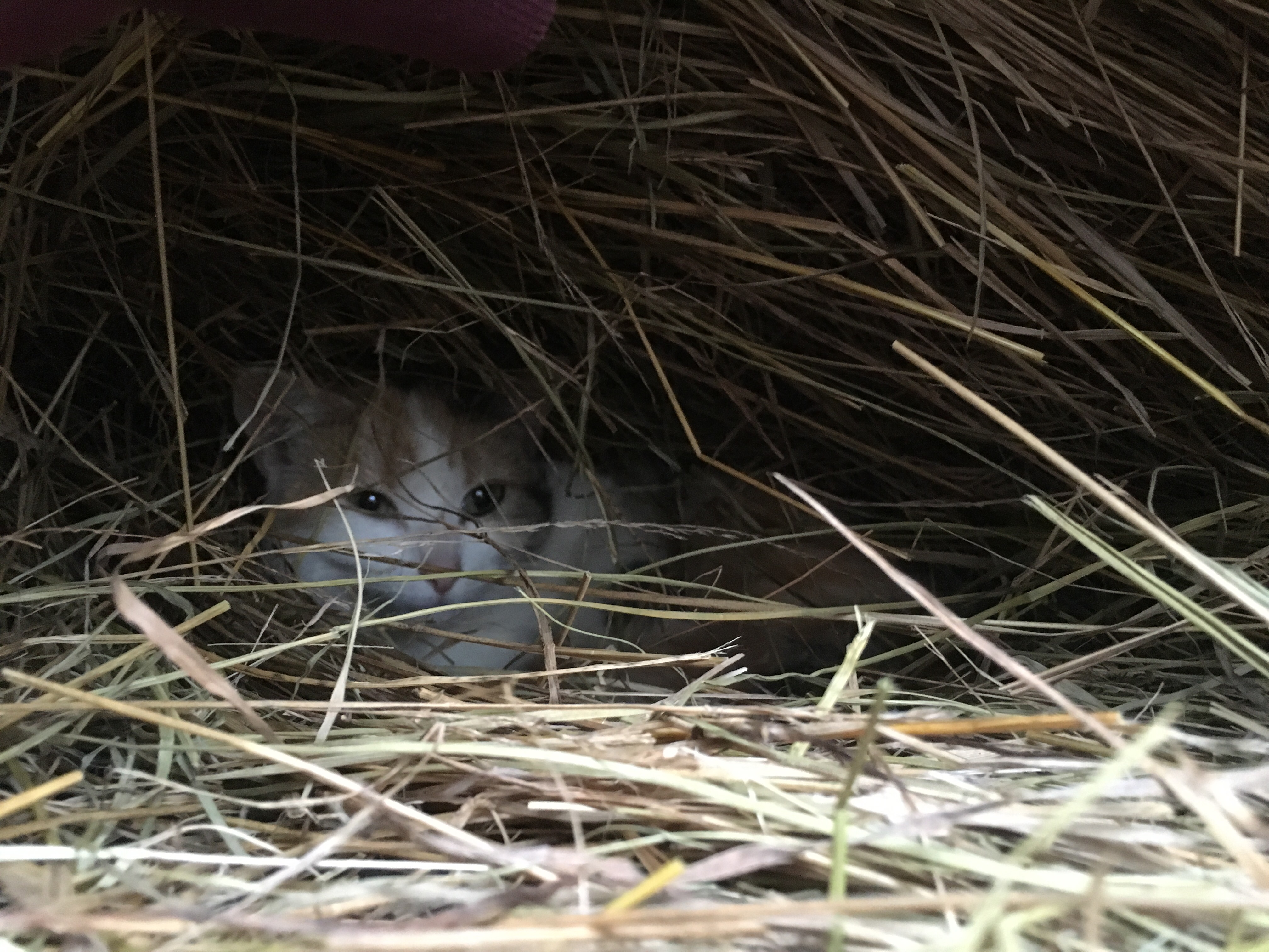 A week or two ago we decided our cat Patches was expecting. Early this morning I saw Patches sneaking through the cow pasture. Then during my board meeting at work, the calls and texts from my kids started rolling in that Patches was in labor and that a kitten was found alone in the hay. When I got home from work, we found Patches buried in a hay bale with one kitten. But a little further investigation and we discovered three more kittens in a different area in the hay bale! Not sure the best thing for them, we all decided to bring them inside and make sure they are dry, warm and all together. Never a dull moment on the farm.