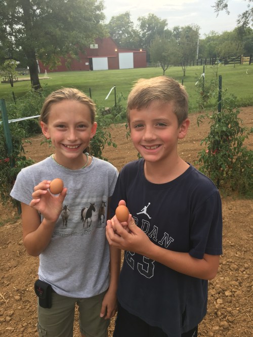 We bought chicks from TSC in the early spring, kept them in the house, then the barn and finally to the coop. So far we haven’t lost any of the chickens to predators. And finally…our first eggs! Everyone is very excited.