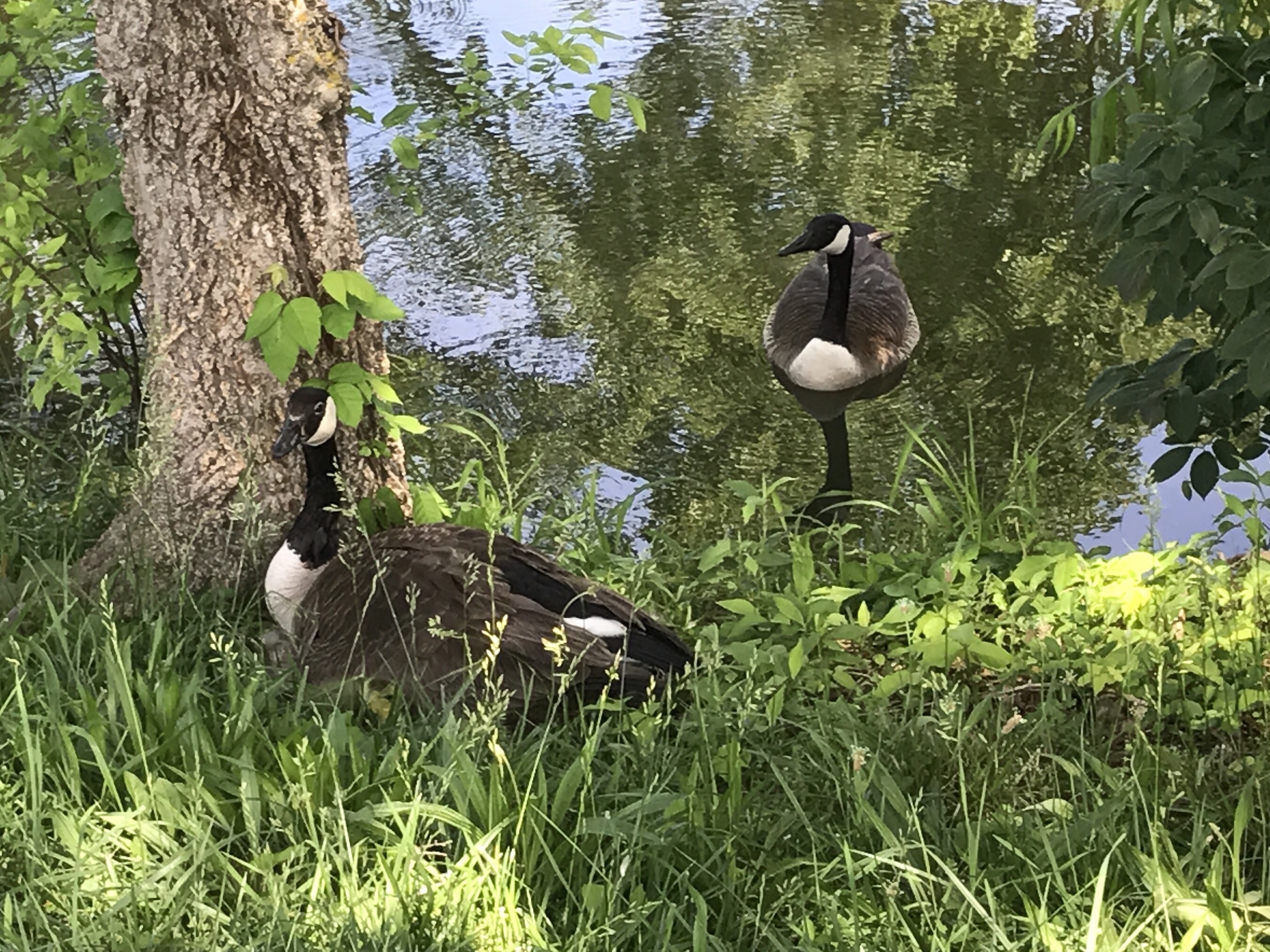 Each winter since we bought the farm, two geese come and make a nest in the same place. We like to think they are the same geese and we affectionately named them Goosey & Gander. This year turtles robbed the nest and ate the eggs. But Goosey made a second nest in a different area and we’ve been patiently waiting for the new arrivals. Today we saw the first one sneak out from under mother goose.