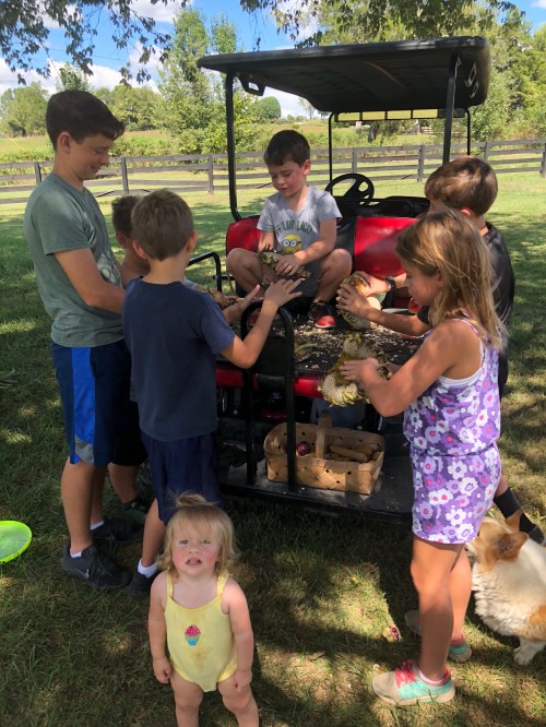 – Cut the heads off the stalks and let the kids help you work the seeds out into a pile