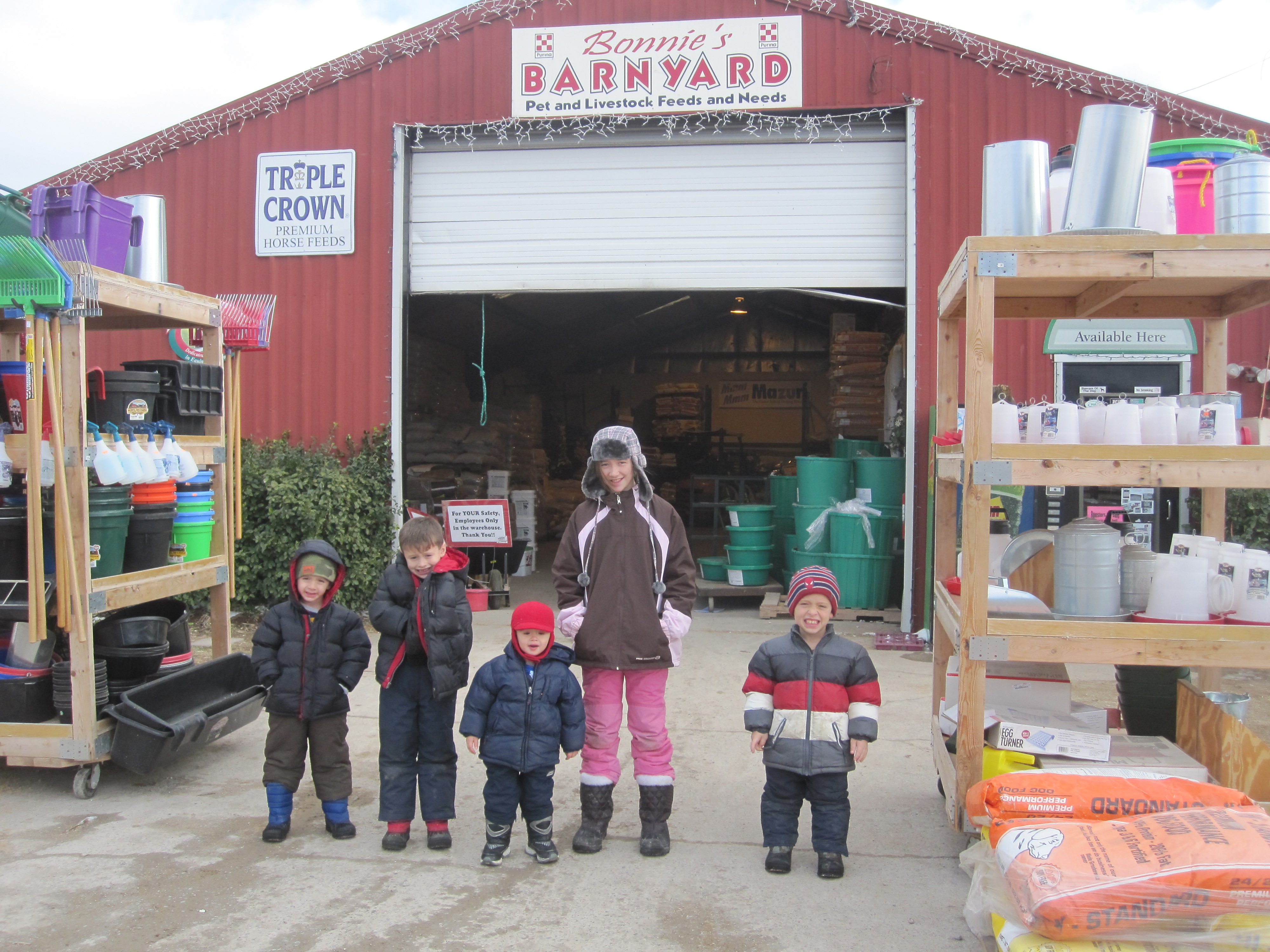 Here we are on a recent trip to Bonnie’s Barnyard to pick up some hay and sweet feed for our animals. Bonnie’s always has anything you can possibly need for farm animals.